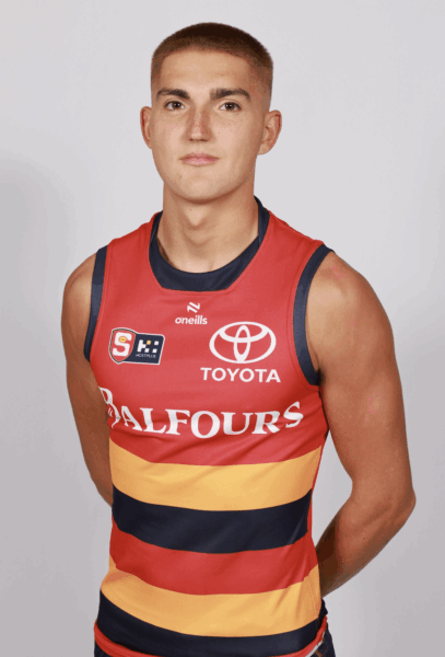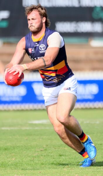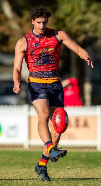 Riley Knight, Jared Petrenko, Jake Kelly, Angus Graham and Shaun McKernan in Adelaide’s first SANFL jumper; the back of Matt Crouch’s jumper.