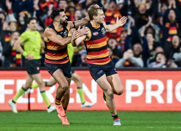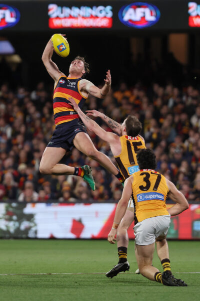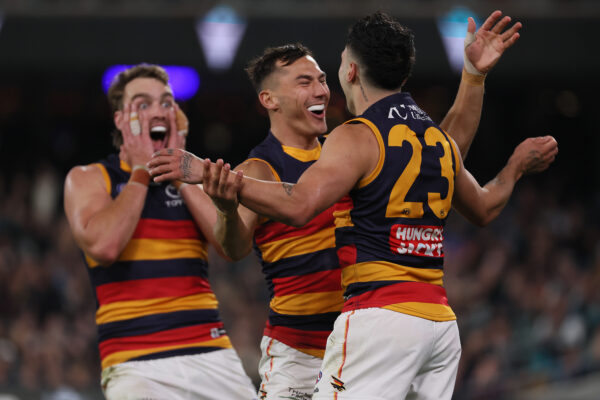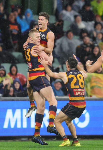But the Crows were on the wrong end of a tight finish in wet Tasmania the next week when Hawthorn’s Jai Newcombe goaled late to secure a three-point win. Thirteen consecutive behinds were kicked between the two teams during the third and fourth terms.