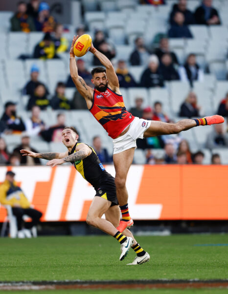 Dan Curtin celebrated a three-year contract extension (until the end of 2029) with 26 disposals and two goals from a wing in Adelaide’s 69-point win over Richmond at the MCG. Max Michalanney enjoyed a rare forward switch, kicking three goals.